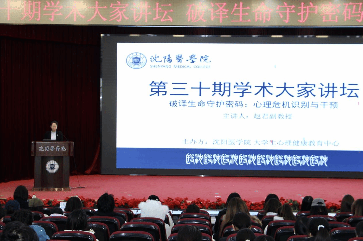 为深入贯彻落实教育部《全面加强和改进新时代学生心理健康工作专项行动计划(2023—2025年)》(教体艺〔2023〕1号)文件精神,搭建心理健康领域学术交流平台,推动校园心理危机干预工作专业化发展,11月20日,沈阳医学院大学生心理健康教育中心(心理学系)在图书馆六楼学术报告厅,举办第三十期学术大家讲坛。本次讲坛以“破译生命守护密码:心理危机识别与干预”为主题,由心理中心(心理学系)副主任刘洋主持,心理学系全体教师、各学院教师代表共同参会。